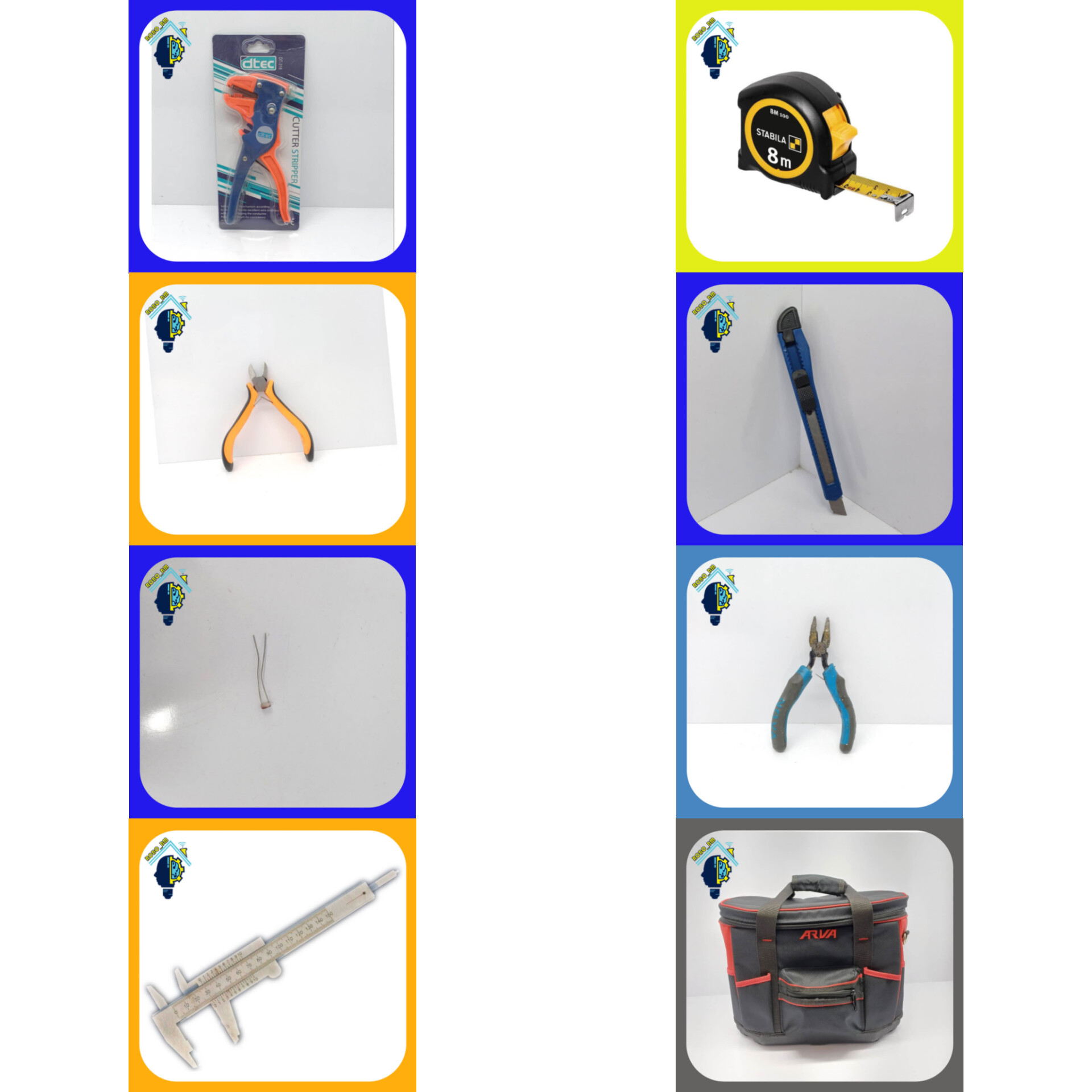 شامل ابزار های سیم چین دم باریک و انبردست و دست کش عایق و کف چین و کتاب کامل و جامع تابلو برق و برق کشی و…..